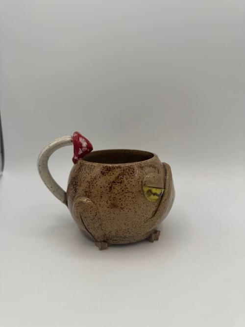 Add whimsy to your daily routine with this handmade ceramic frog mug. Each piece is hand-glazed and one of a kind.