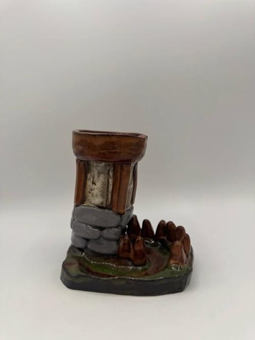 A set of plastic dice are provided with the tower, in order to keep it in good working condition stick to using resin or plastic dice. Heavy dice or metal dice may damage the ceramic structure of the piece if used in this tower.