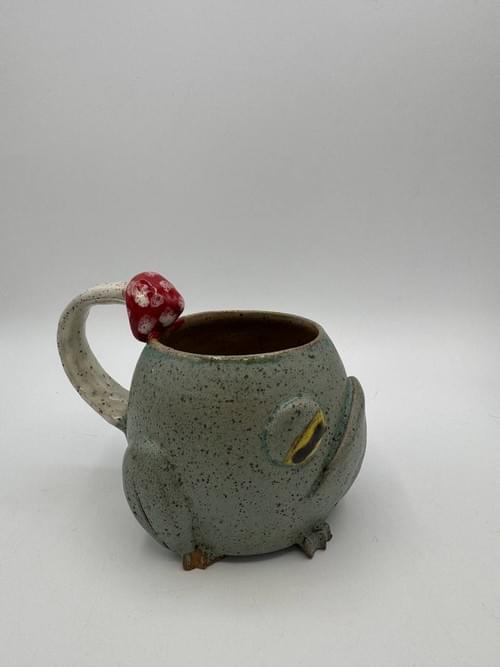 Add whimsy to your daily routine with this handmade ceramic frog mug. Each piece is hand-glazed and one of a kind.